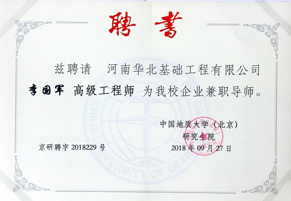 中國地質(zhì)大學(北京)研究生院聘為校外導師一職, 此成績