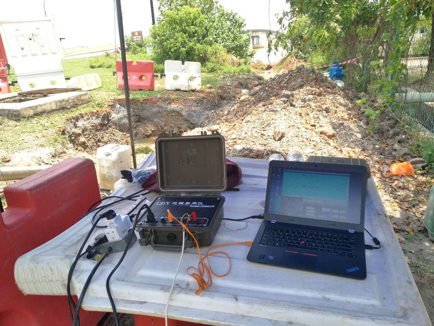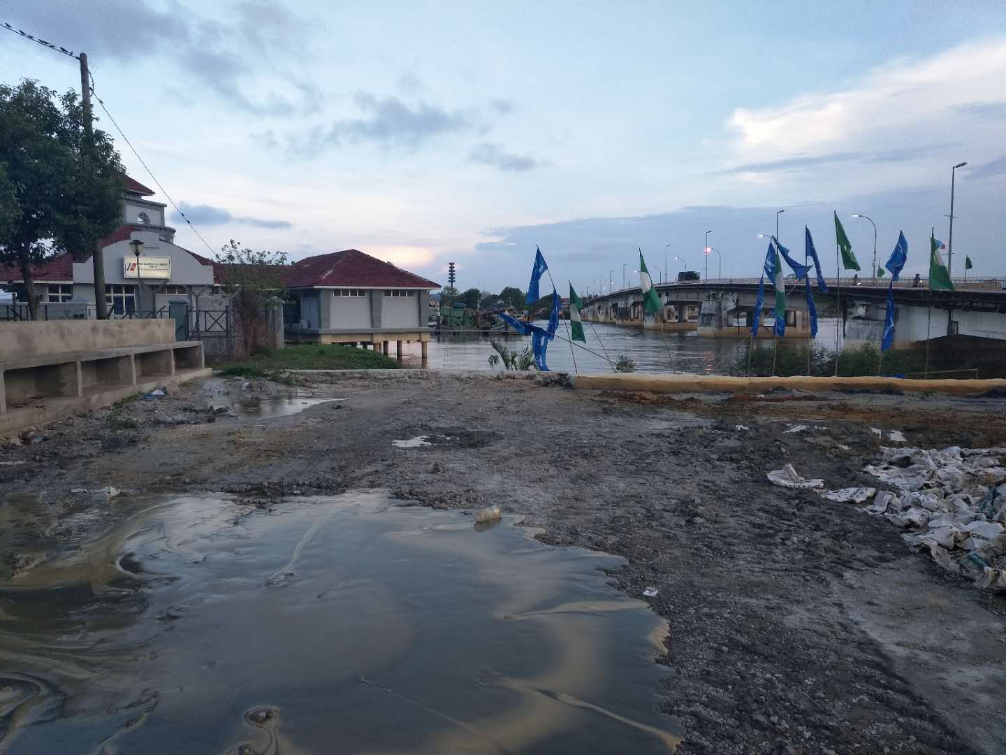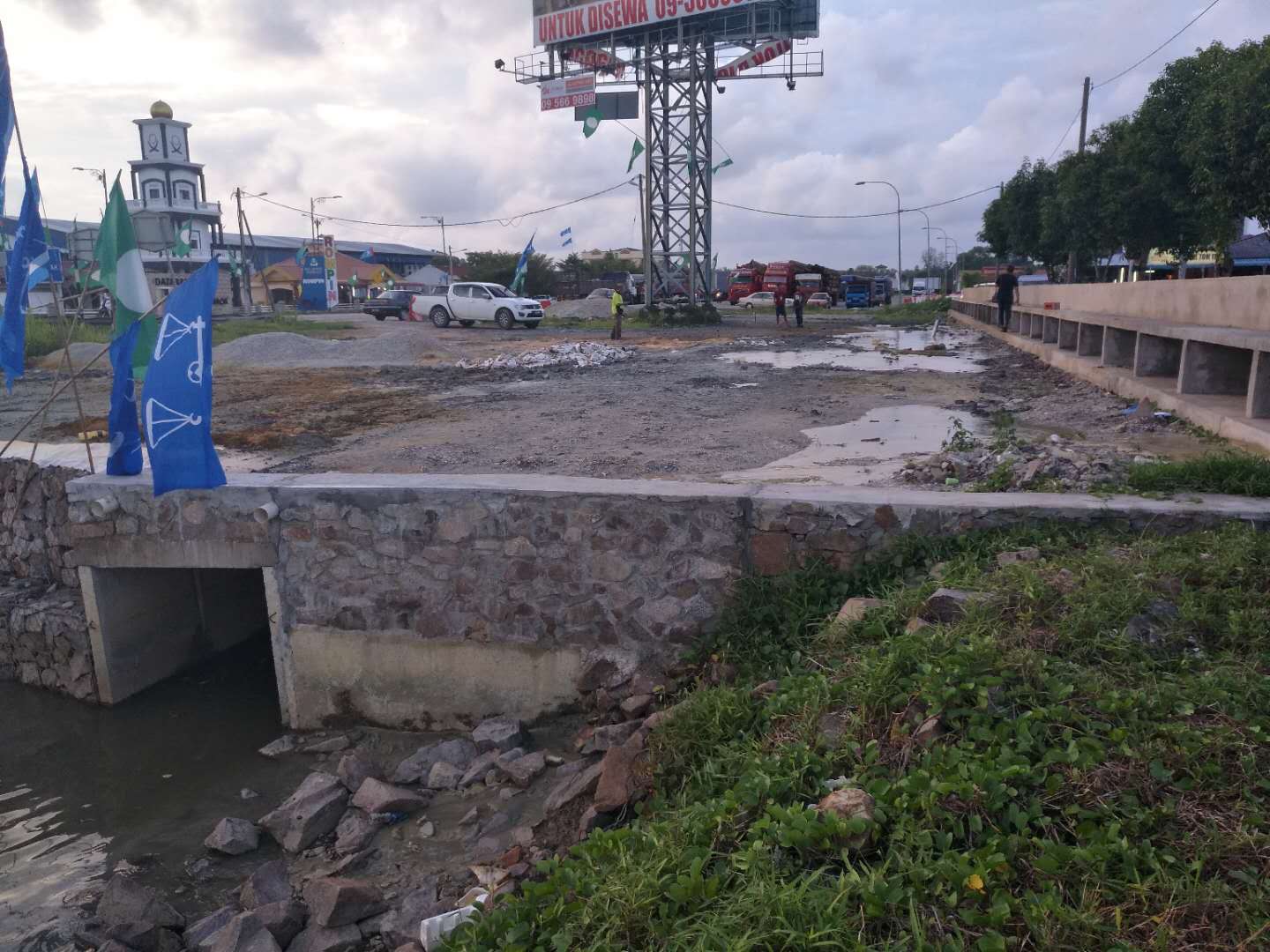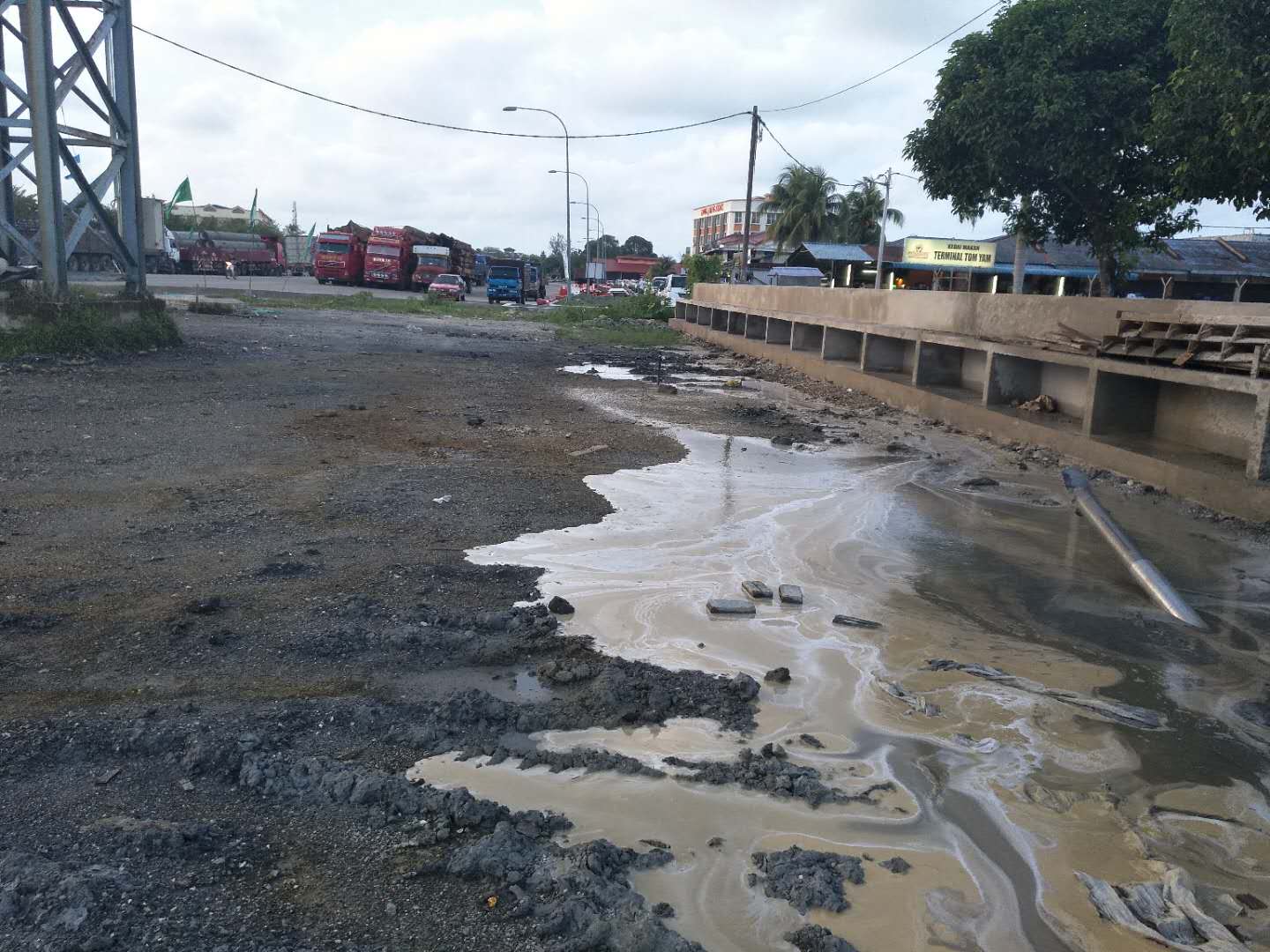這次穿越鉆機(jī)受限制,只能固定在一個(gè)地方,旁邊是給船加油的油廠,穿越差不多平行橋走,距離橋10米距離,處鉆口也很受限制,出鉆口有停車(chē)場(chǎng),有人工管網(wǎng)。